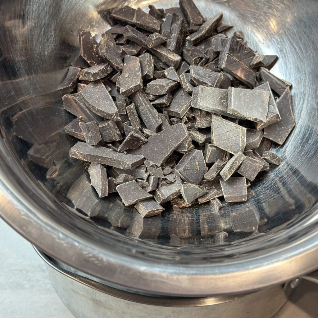 Chopped dark chocolate over a double-boiler