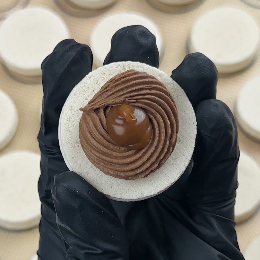 Macarons filled with Dark Chocolate Whipped Ganache and Salted Caramel